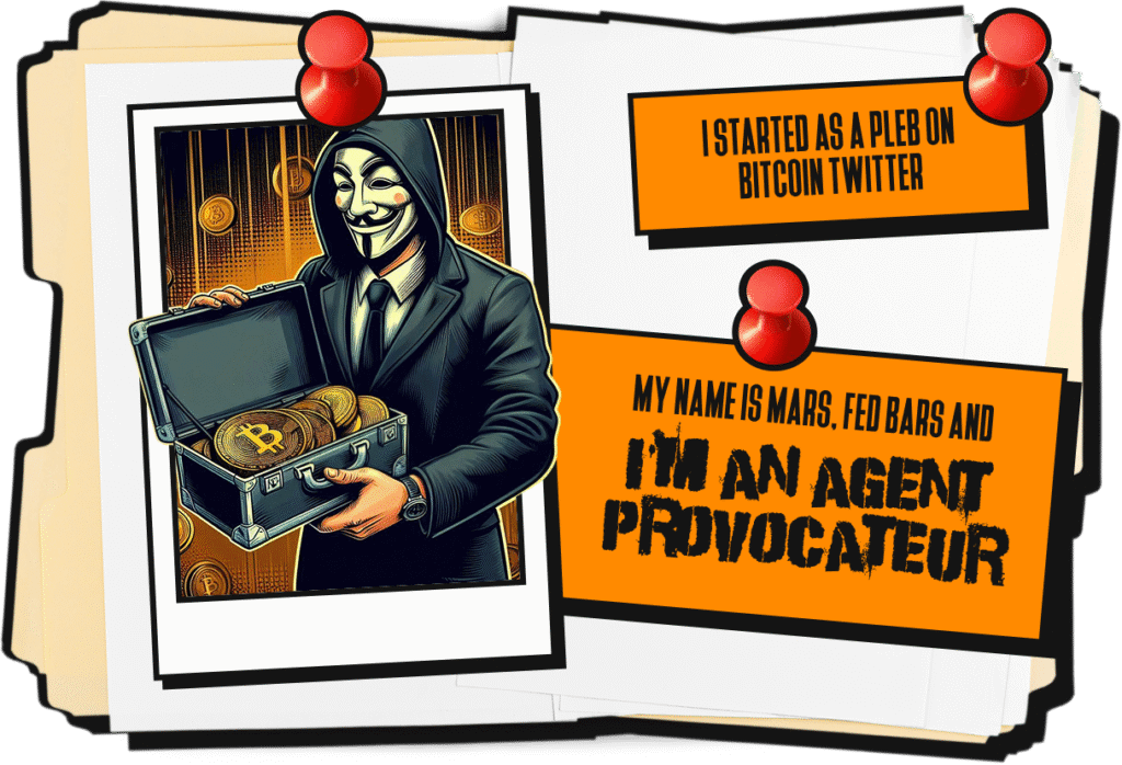 I started as a Pleb on Bitcoin Twitter. Now I’m a Fed. My name is Mars Fed Bars and I’m an AGENT PROVOCATEUR.