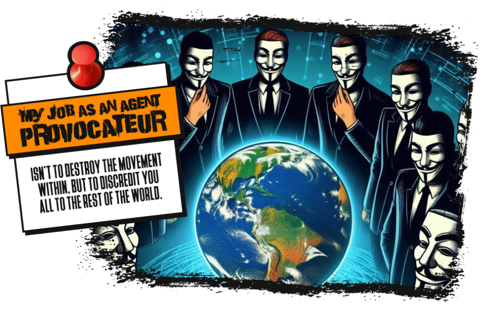 My job as an AGENT PROVOCATEUR isn’t to destroy the movement within, but to discredit you all to the rest of the world.