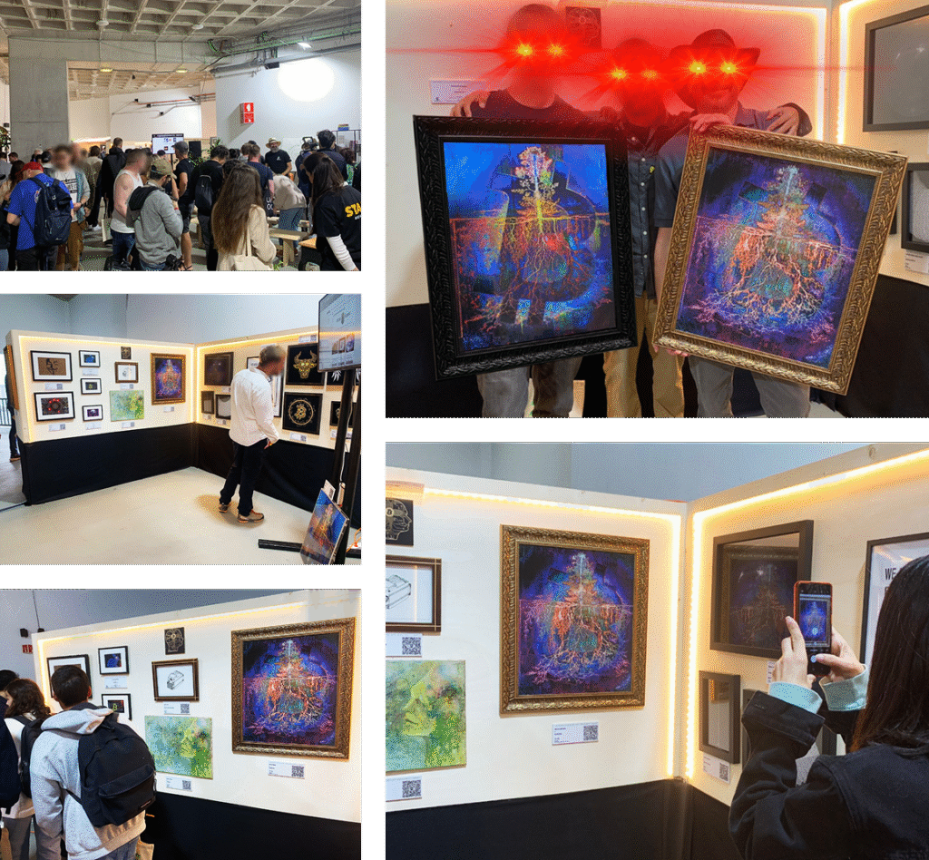 Under Fractal Encrypt’s guidance, we meticulously curated our paintings and sculptures, setting the stage for vibrant discussions, networking, and the excitement of the auction. The strategic placement of the art exhibition at the entrance of the Stadium Conference ensured that everyone at Bitcoin Atlantis had an opportunity to engage with our Bitcoin creations.