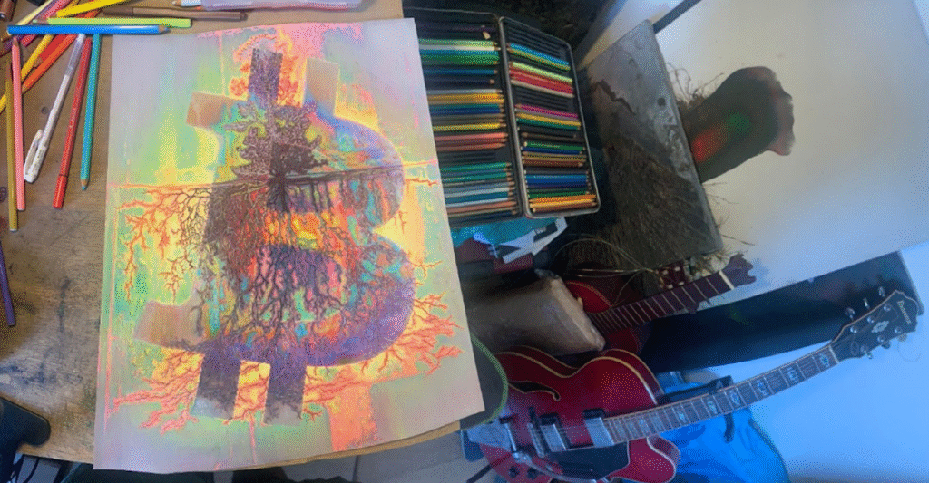 HodlXHold’s Atelier – Example Process of Artwork in Progress from the ‘Bitcoin Roots’ Series